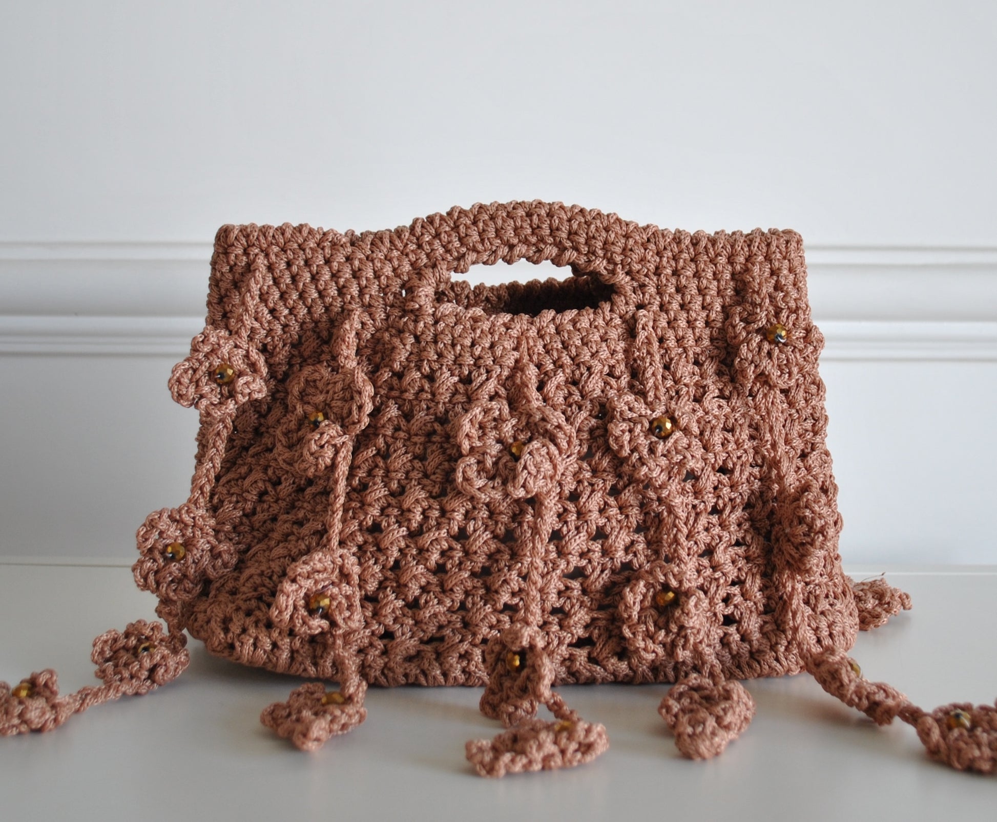 La borsa FAIRY LIGHT BROWN in marrone chiaro con fiori crochet e perline, è letteralmente fatta per rubare la scena (e qualche sguardo curioso).